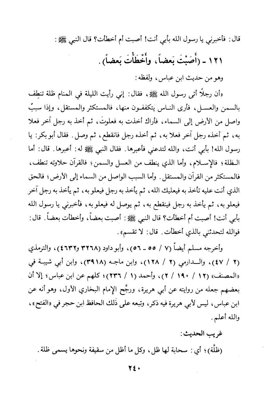 121 - " أصبت بعضا وأخطأت بعضا ".