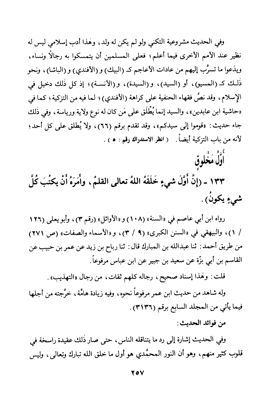 133 - " إن أول شيء خلقه الله تعالى القلم وأمره أن يكتب كل شيء يكون ".