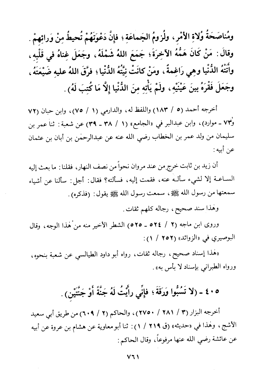 405 - " لا تسبوا ورقة فإني رأيت له جنة أو جنتين ".
