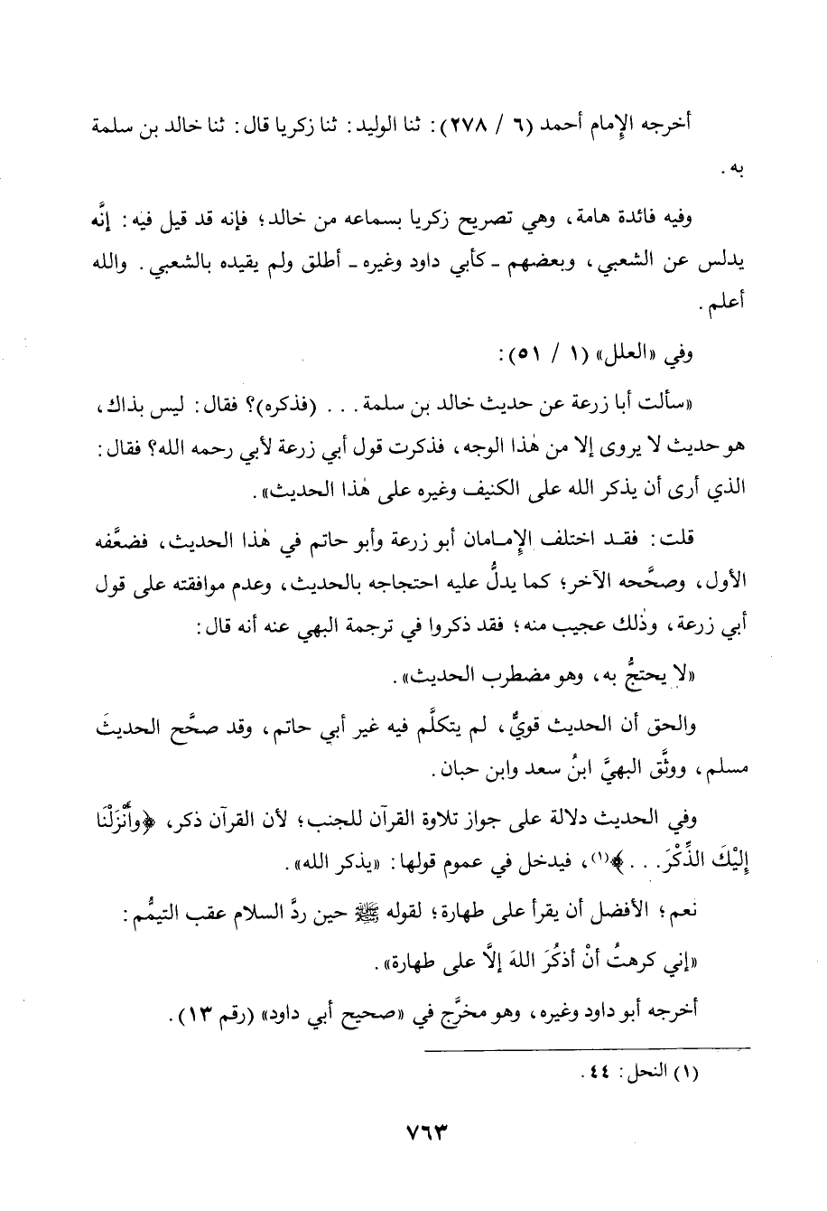 وفي " العلل " (1 / 51) : " سألت أبا زرعة عن حديث خالد بن سلمة ...