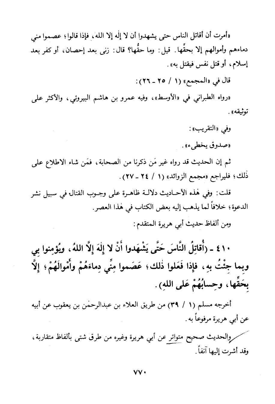 410 - " أمرت أن أقاتل الناس حتى يشهدوا أن لا إله إلا الله، ويؤمنوا بي، وبما