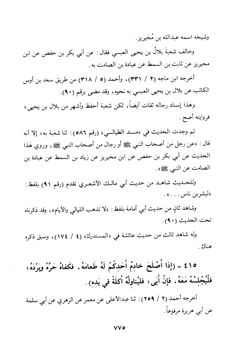 415 - " إذا أصلح خادم أحدكم له طعامه فكفاه حره وبرده، فليجلسه معه، فإن أبى