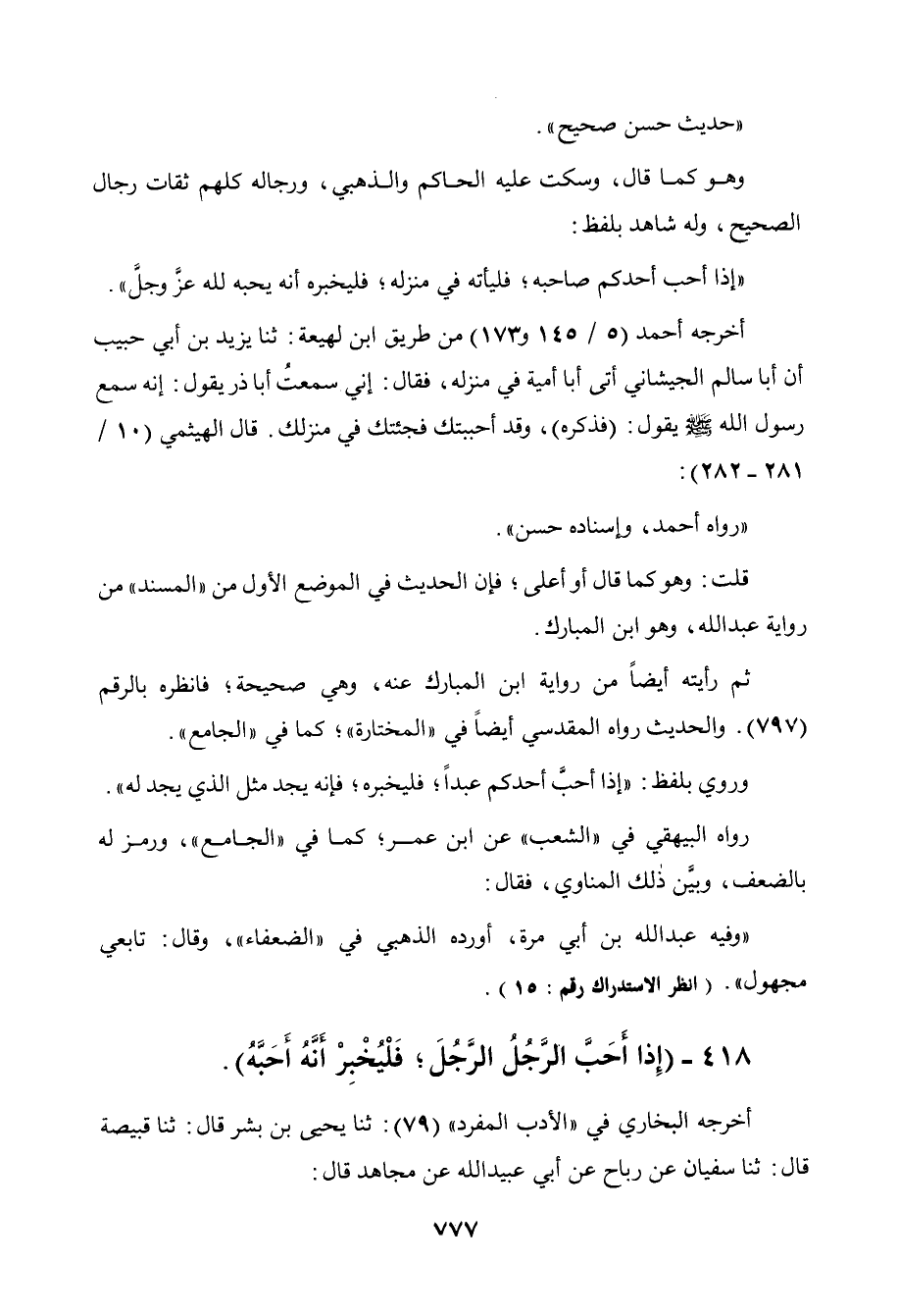 418 - " إذا أحب الرجل الرجل فليخبر أنه أحبه ".