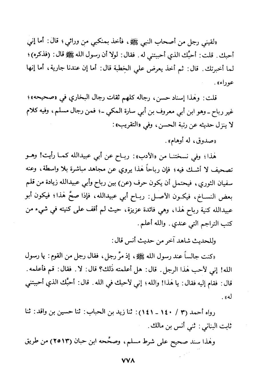 أما إني أحبك، قلت: أحبك الذي أحببتني له، فقال: لولا أن رسول الله صلى
