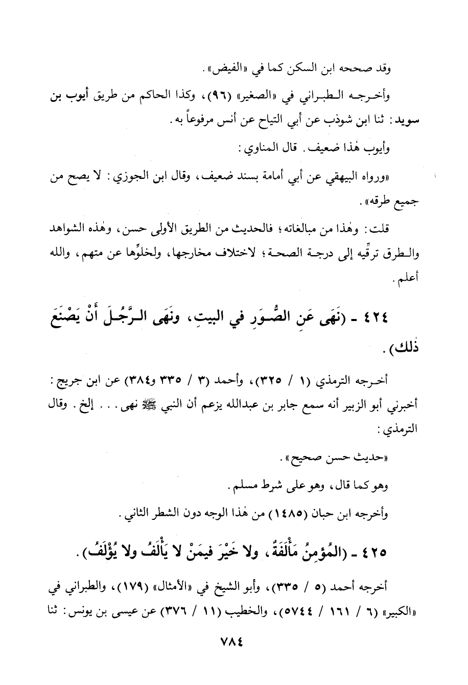 425 - " المؤمن مألفة، ولا خير فيمن لا يألف ولا يؤلف ".
