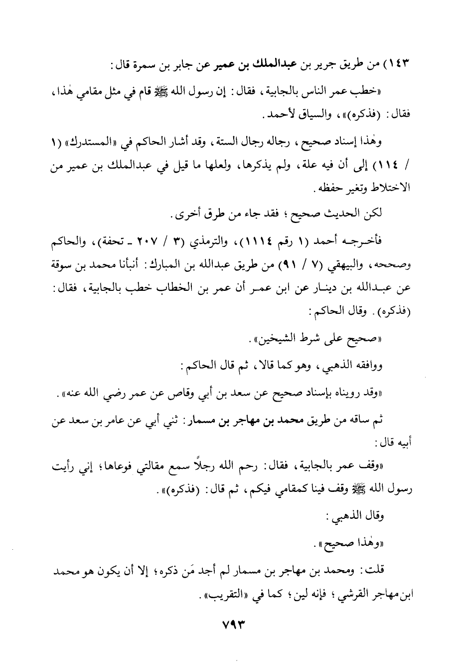 " وقد رويناه بإسناد صحيح عن سعد بن أبي وقاص عن عمر رضي الله عنه ".