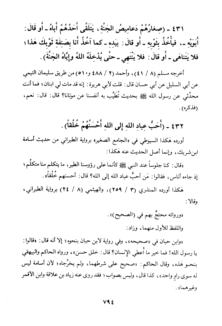 432 - " أحب عباد الله إلى الله أحسنهم خلقا ".
