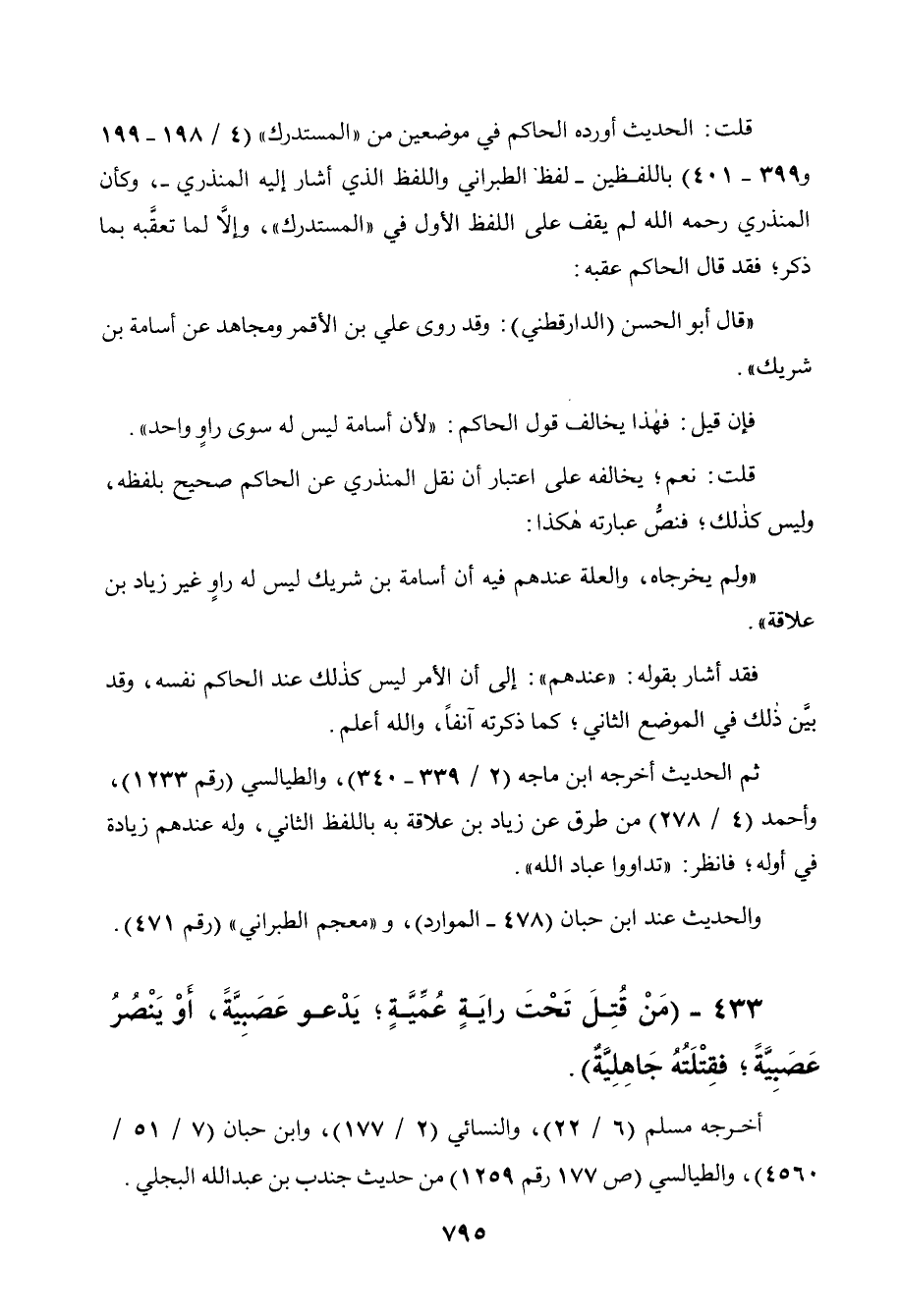 433 - " من قتل تحت راية عمية، يدعو عصبية أو ينصر عصبية، فقتلته جاهلية ".