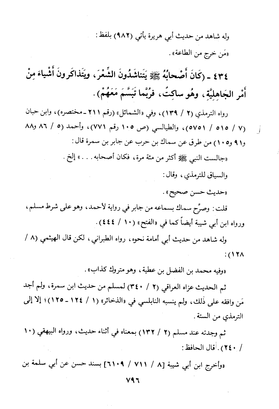 434 - " كان أصحابه صلى الله عليه وسلم يتناشدون الشعر، ويتذاكرون أشياء من أمر