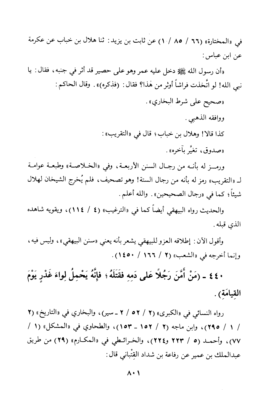 440 - " من أمن رجلا على دمه فقتله فإنه يحمل لواء غدر يوم القيامة ".