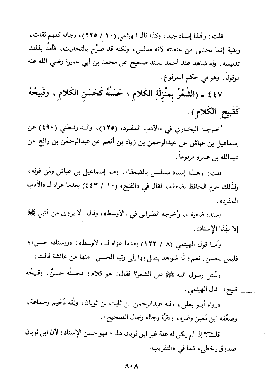 " سئل رسول الله صلى الله عليه وسلم عن الشعر؟ فقال: هو كلام فحسنه حسن