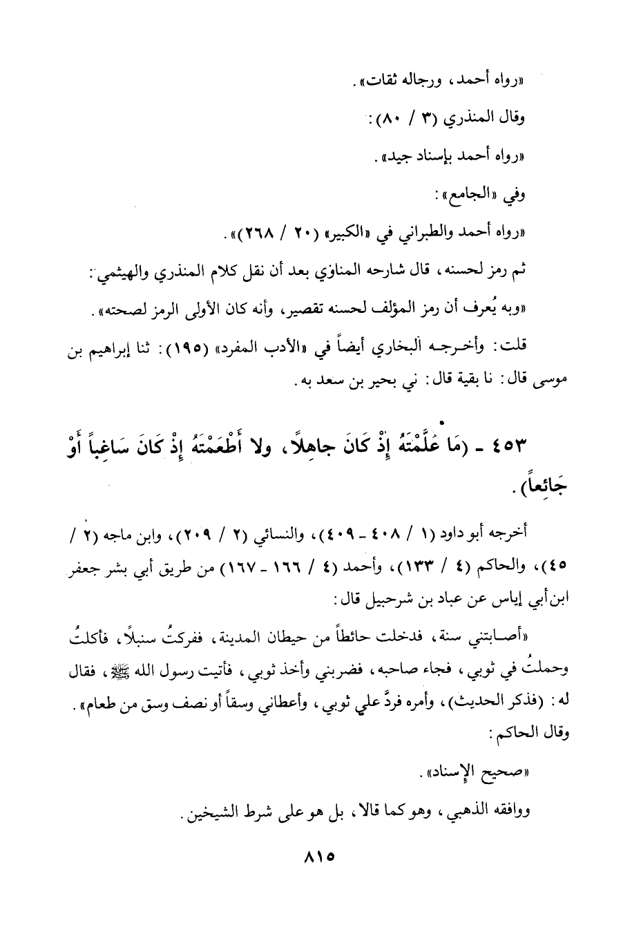 453 - " ما علمته إذ كان جاهلا، ولا أطعمته إذ كان ساغبا أو جائعا ".