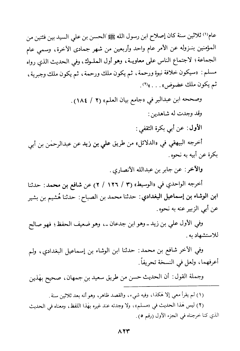 الحسن بن على السيد بين فئتين من المؤمنين بنزوله عن الأمر عام واحد وأربعين