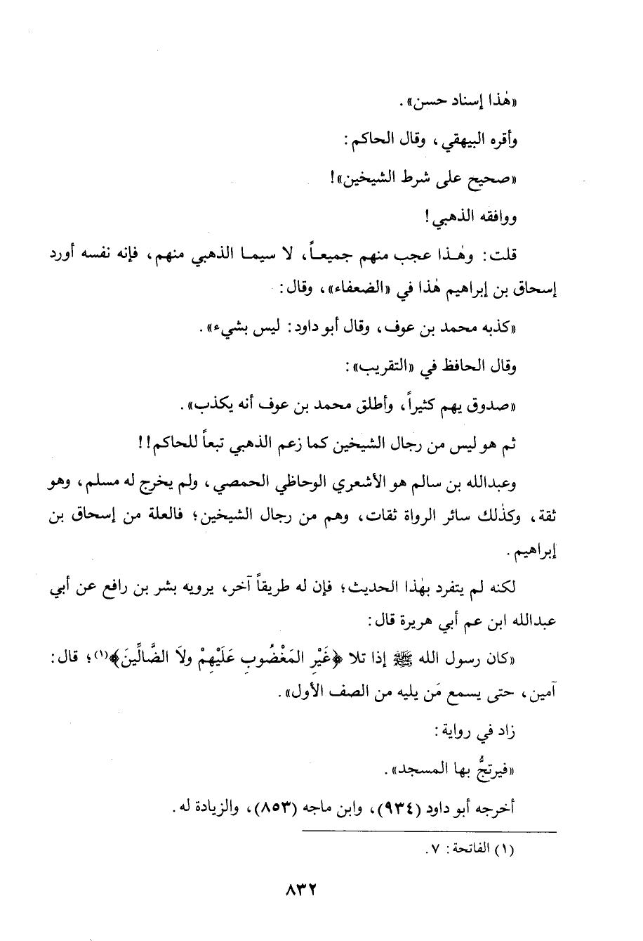وكذلك سائر الرواة ثقات وهم من رجال الشيخين، فالعلة من إسحاق بن إبراهيم.