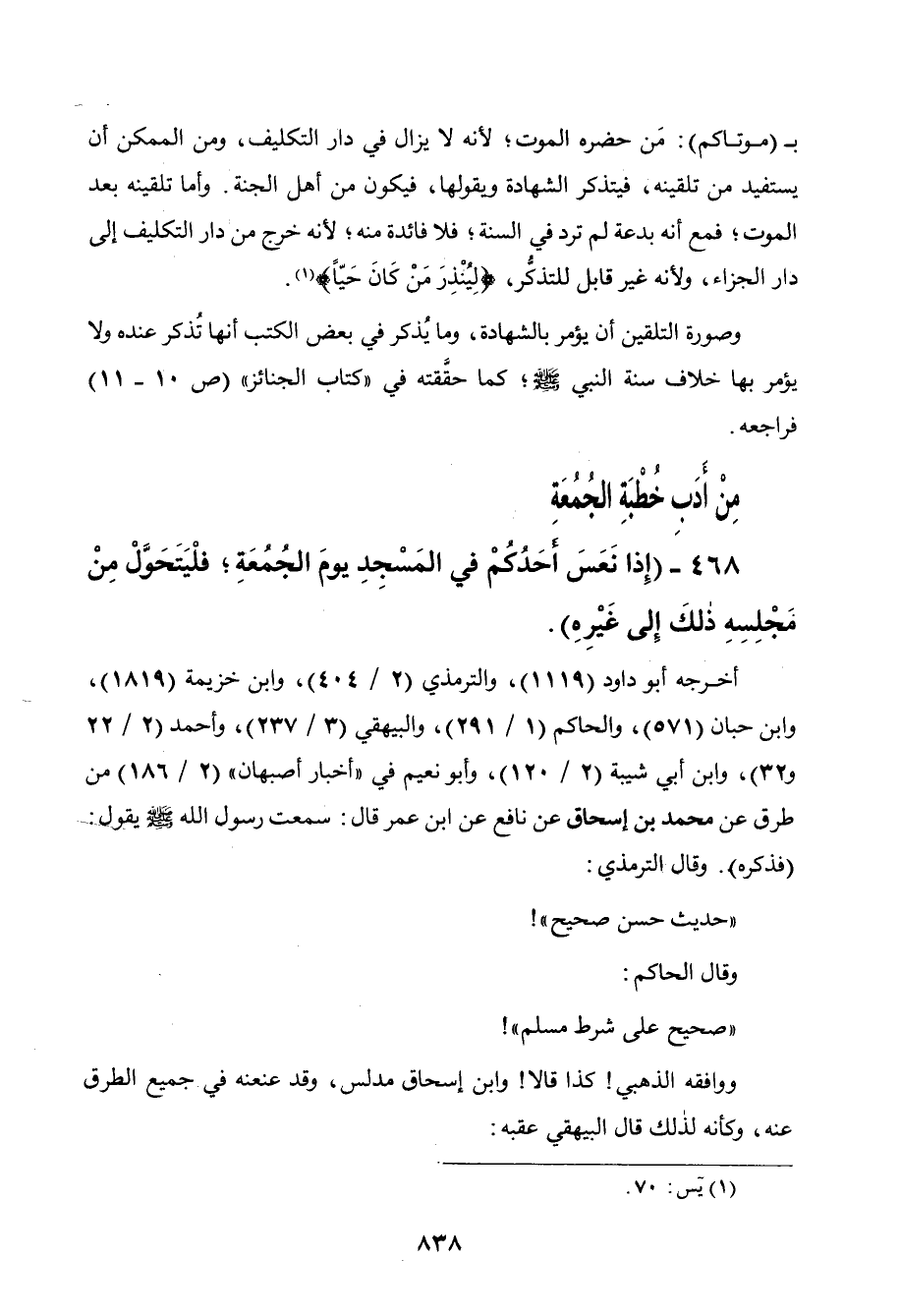 468 - " إذا نعس أحدكم في المسجد يوم الجمعة، فليتحول من مجلسه ذلك إلى غيره ".