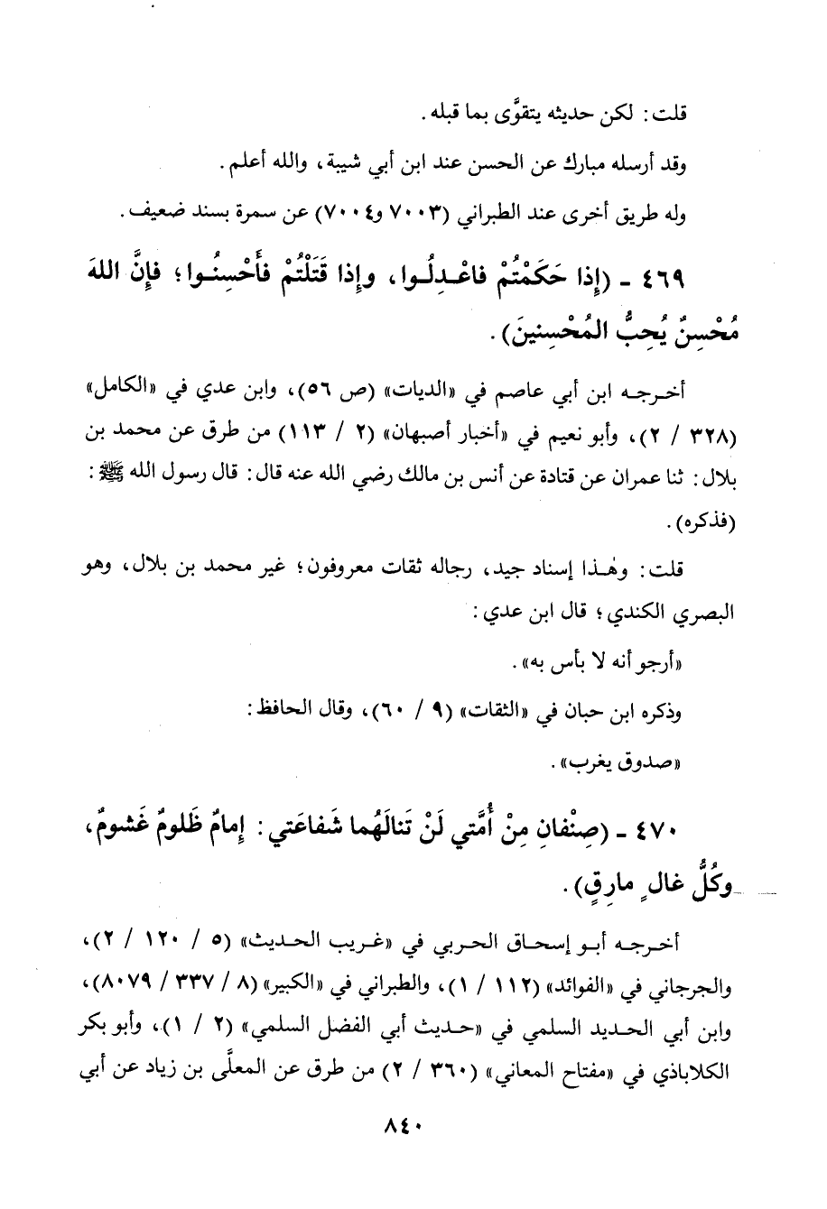 469 - " إذا حكمتم فاعدلوا وإذا قتلتم فأحسنوا، فإن الله محسن يحب المحسنين ".