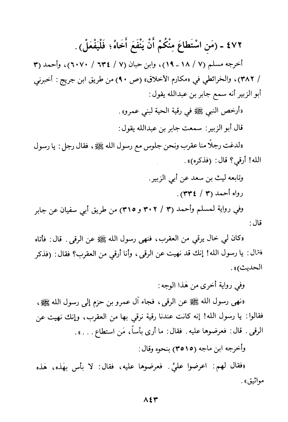 472 - " من استطاع منكم أن ينفع أخاه فليفعل ".
