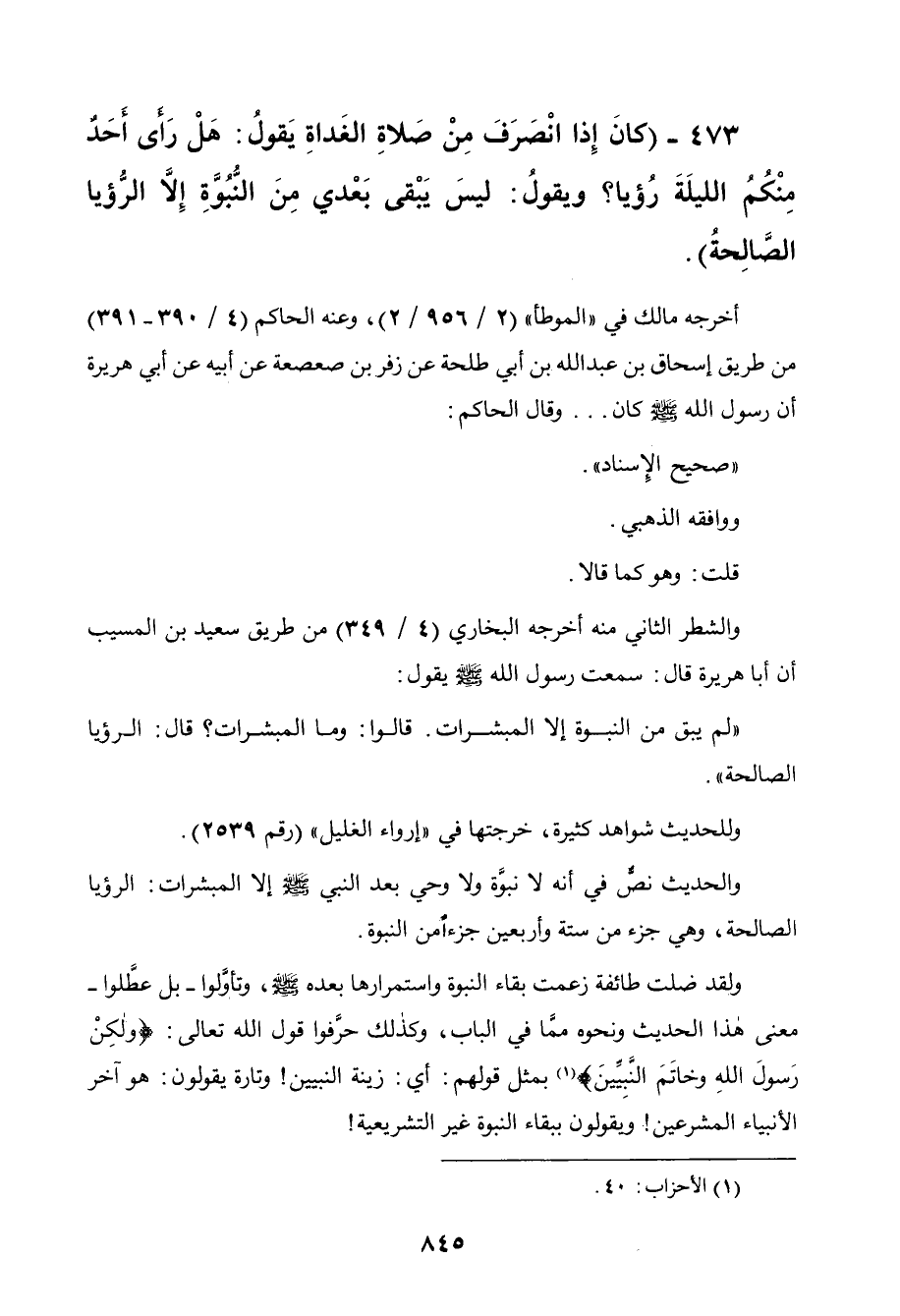 473 - " كان إذا انصرف من صلاة الغداة يقول: هل رأى أحد منكم الليلة رؤيا؟ ويقول: