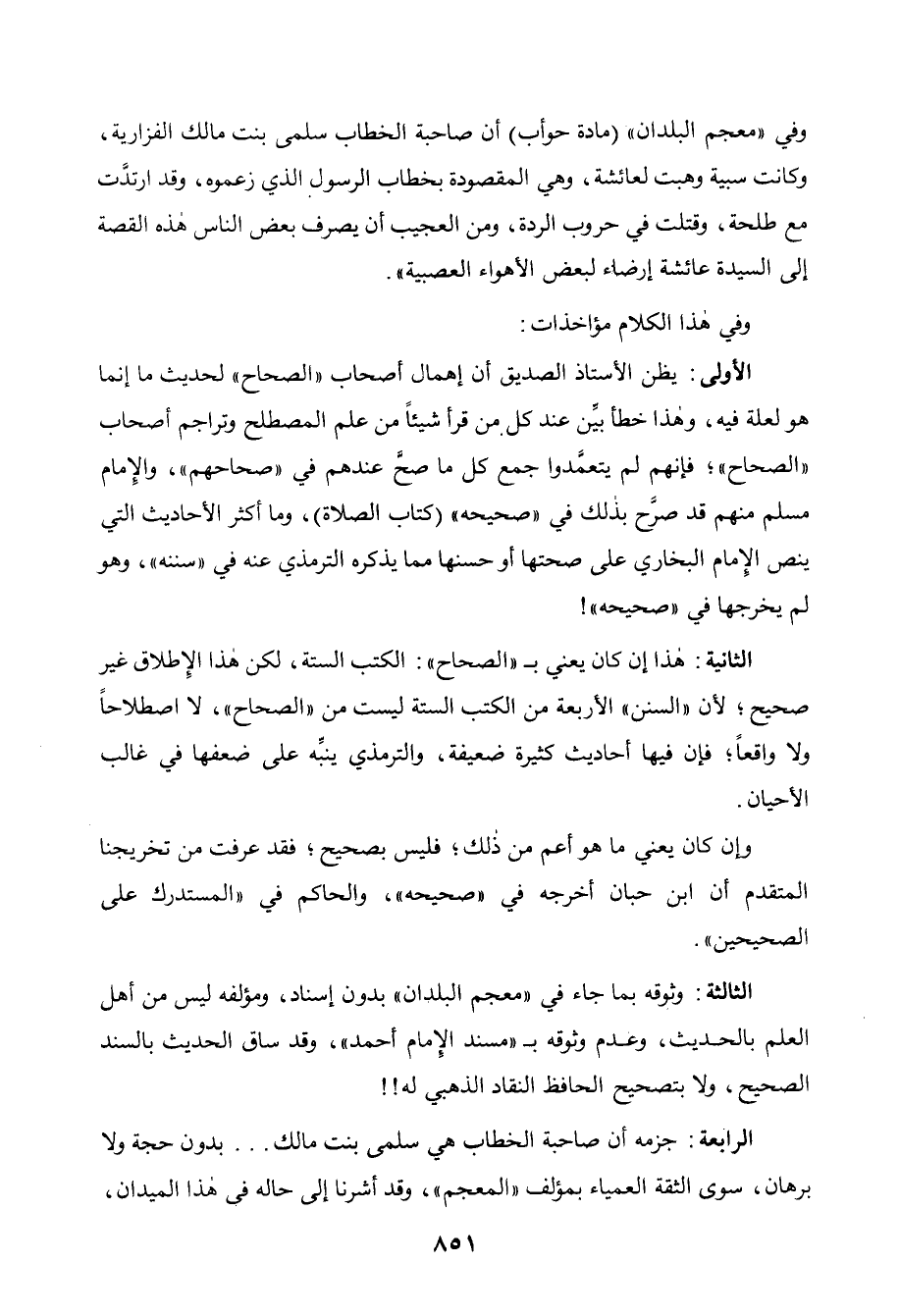الأولى: يظن الأستاذ الصديق أن إهمال أصحاب (الصحاح) لحديث ما إنما هو