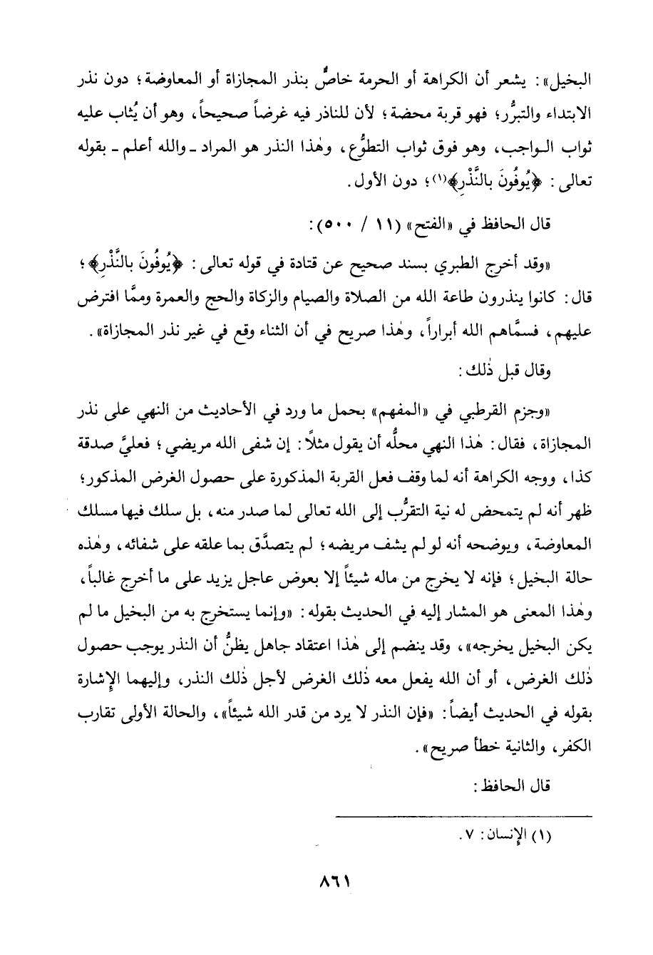 البخيل " يشعر أن الكراهة أو الحرمة خاص بنذر المجازاة أو المعاوضة، دون نذر