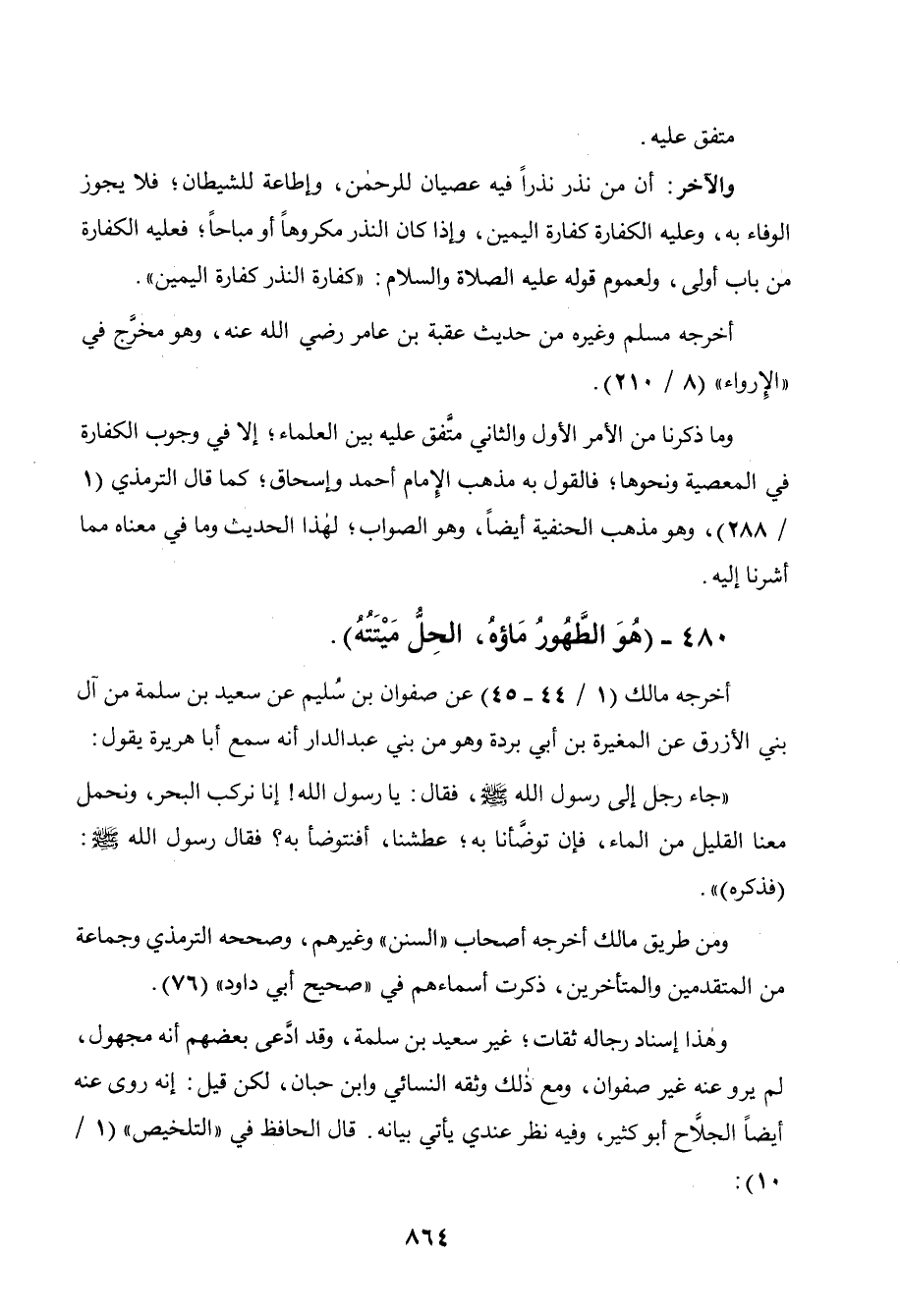 480 - " هو الطهور ماؤه، الحل ميتته ".