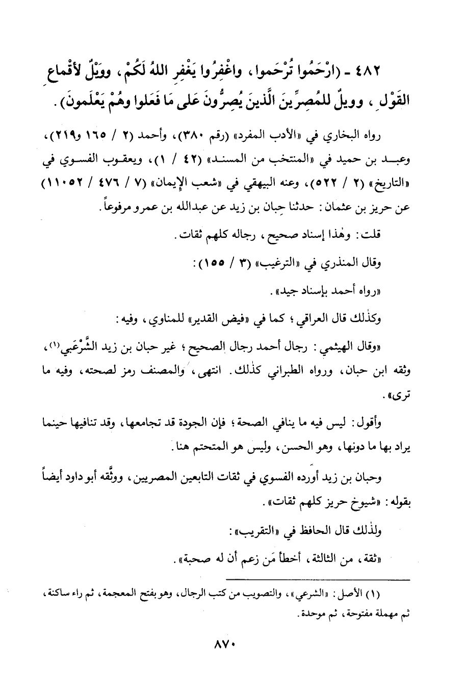 482 - " ارحموا ترحموا واغفروا يغفر الله لكم وويل لأقماع القول وويل للمصرين
