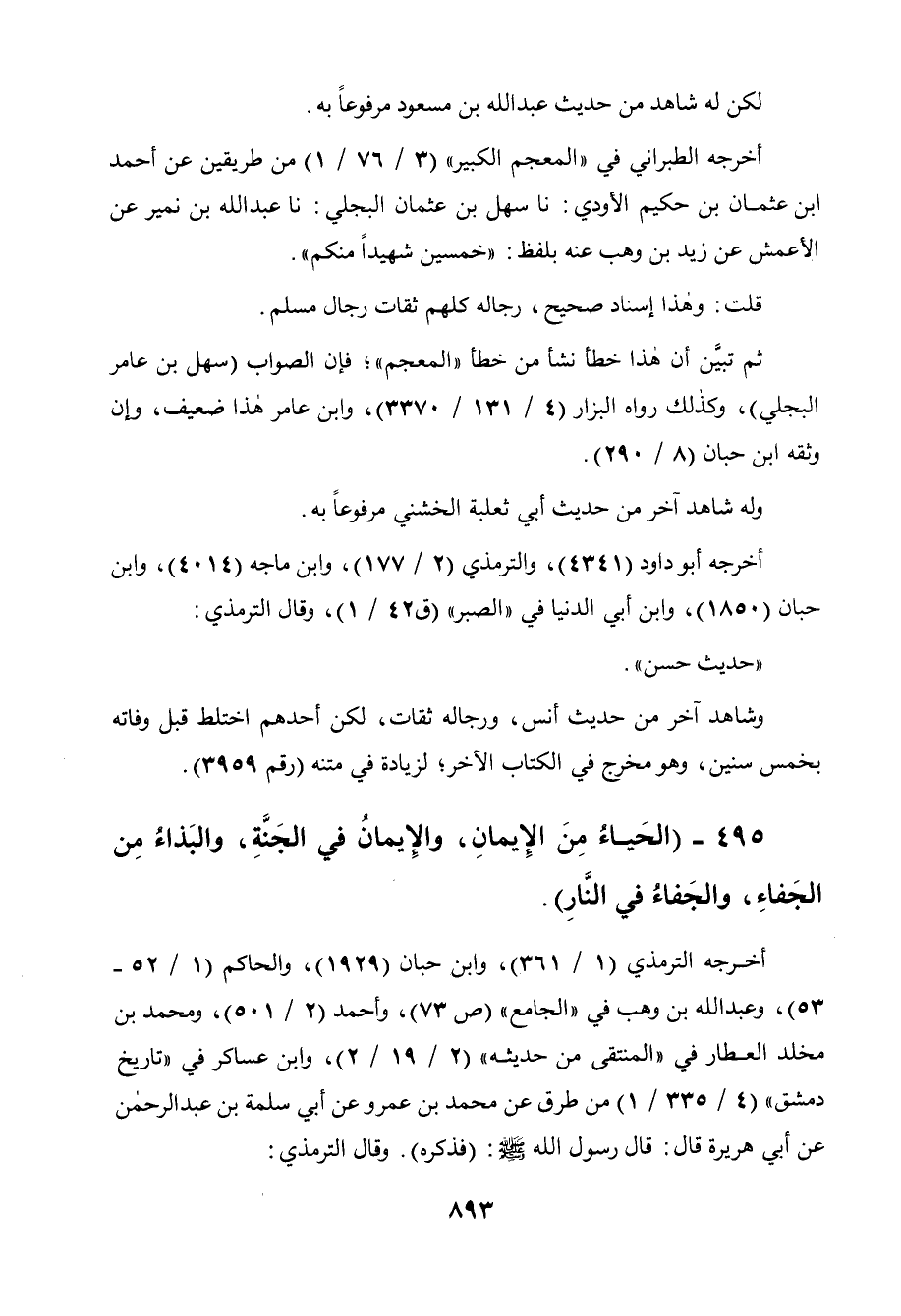 495 - " الحياء من الإيمان والإيمان في الجنة والبذاء من الجفاء والجفاء في