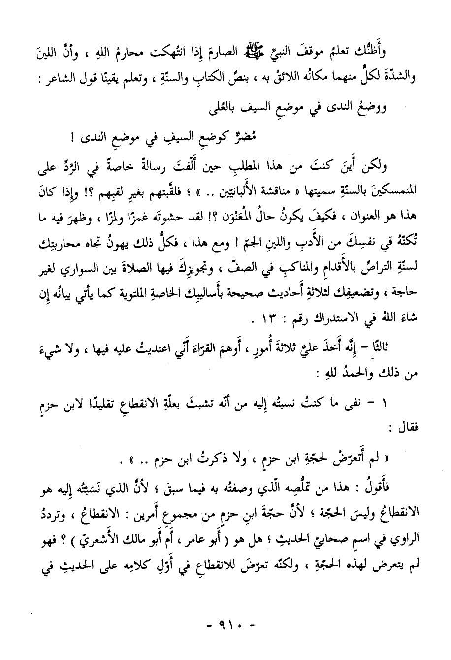 "لم أَتعرّضْ لحجّةِ ابن حزمٍ، ولا ذكرتُ ابن حزم..".