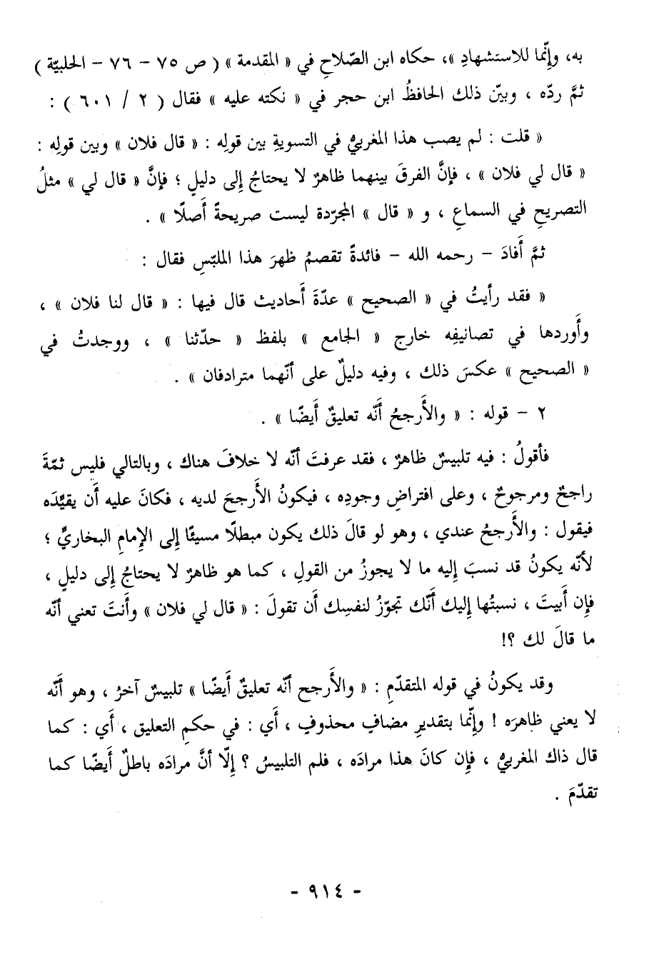 " قلت: لم يصب هذا المغربيُّ في التسويةِ بين قولِه: "قال فلان" وبين قولِه: