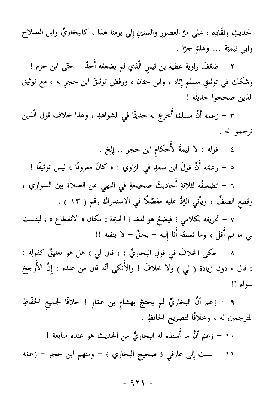 9- زعم أنَّ البخاريَّ لم يحتجَّ بهشامِ بن عمّارٍ! خلافًا لجميعِ الحفّاظِ المترجمين له، وخلافًا لتصريح الحافظِ.