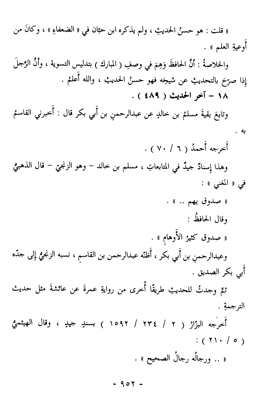 "قلت: هو حسنُ الحديثِ، ولم يذكره ابن حبّان في "الضعفاءِ"، وكانَ من أَوعيةِ العلم".