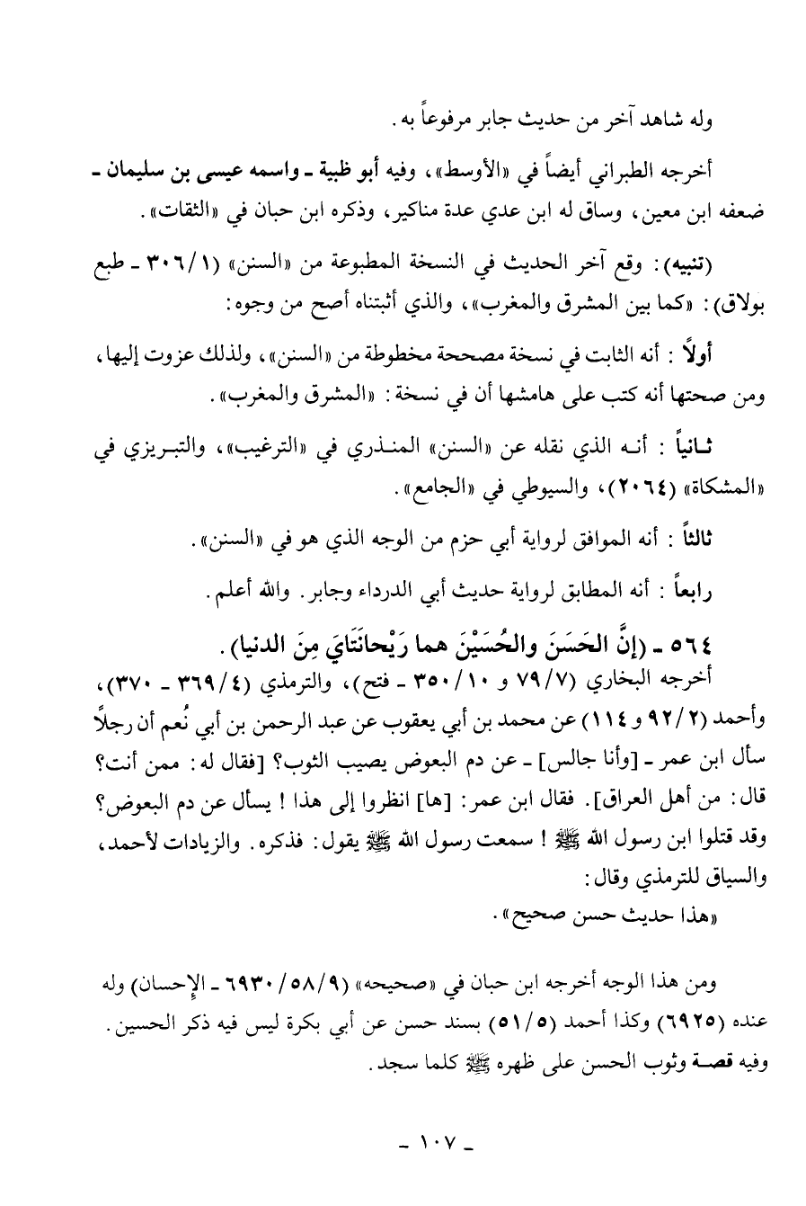 564 - " إن الحسن والحسين هما ريحانتاي من الدنيا ".