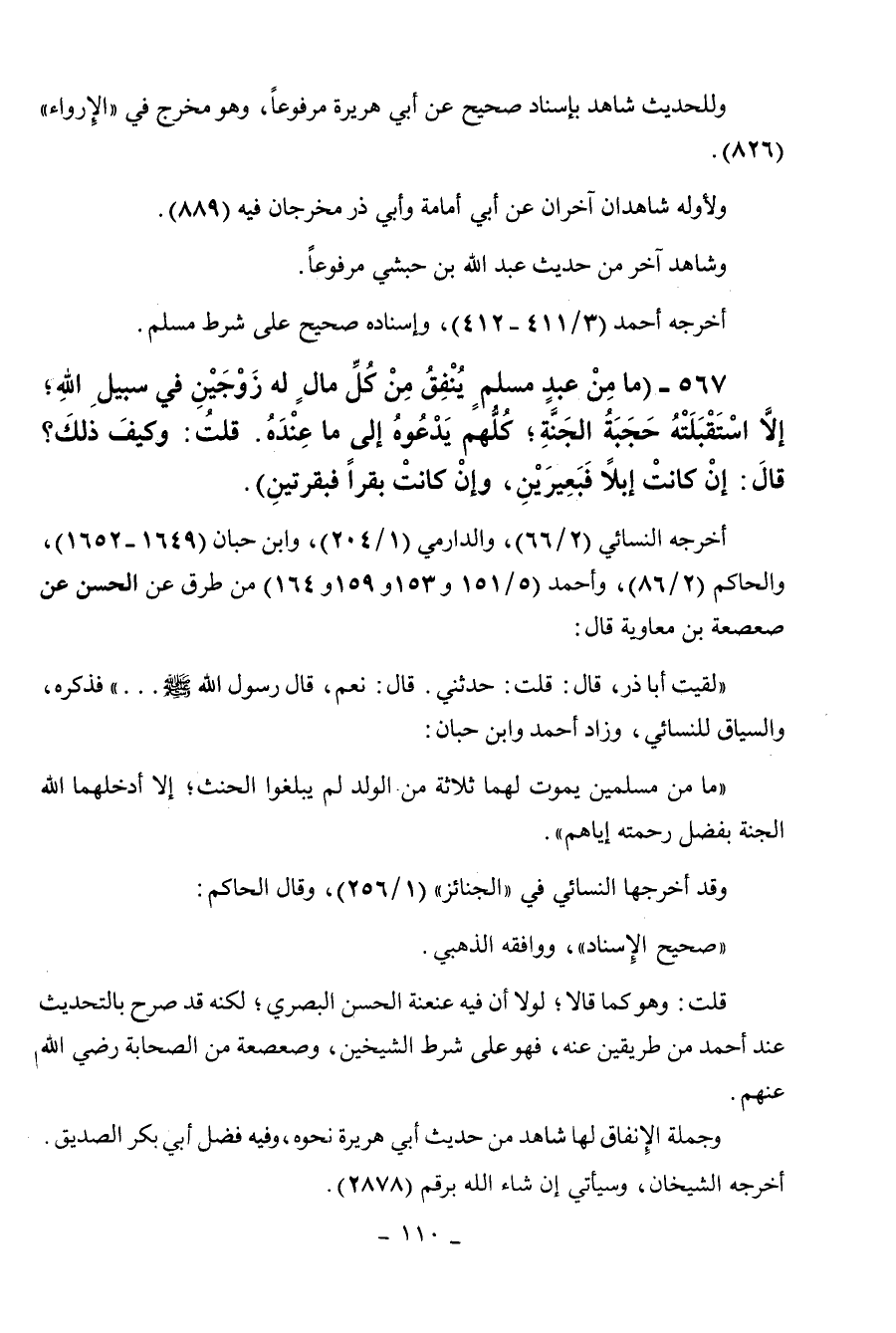 567 - " ما من عبد مسلم ينفق من كل مال له زوجين في سبيل الله إلا استقبلته حجبة