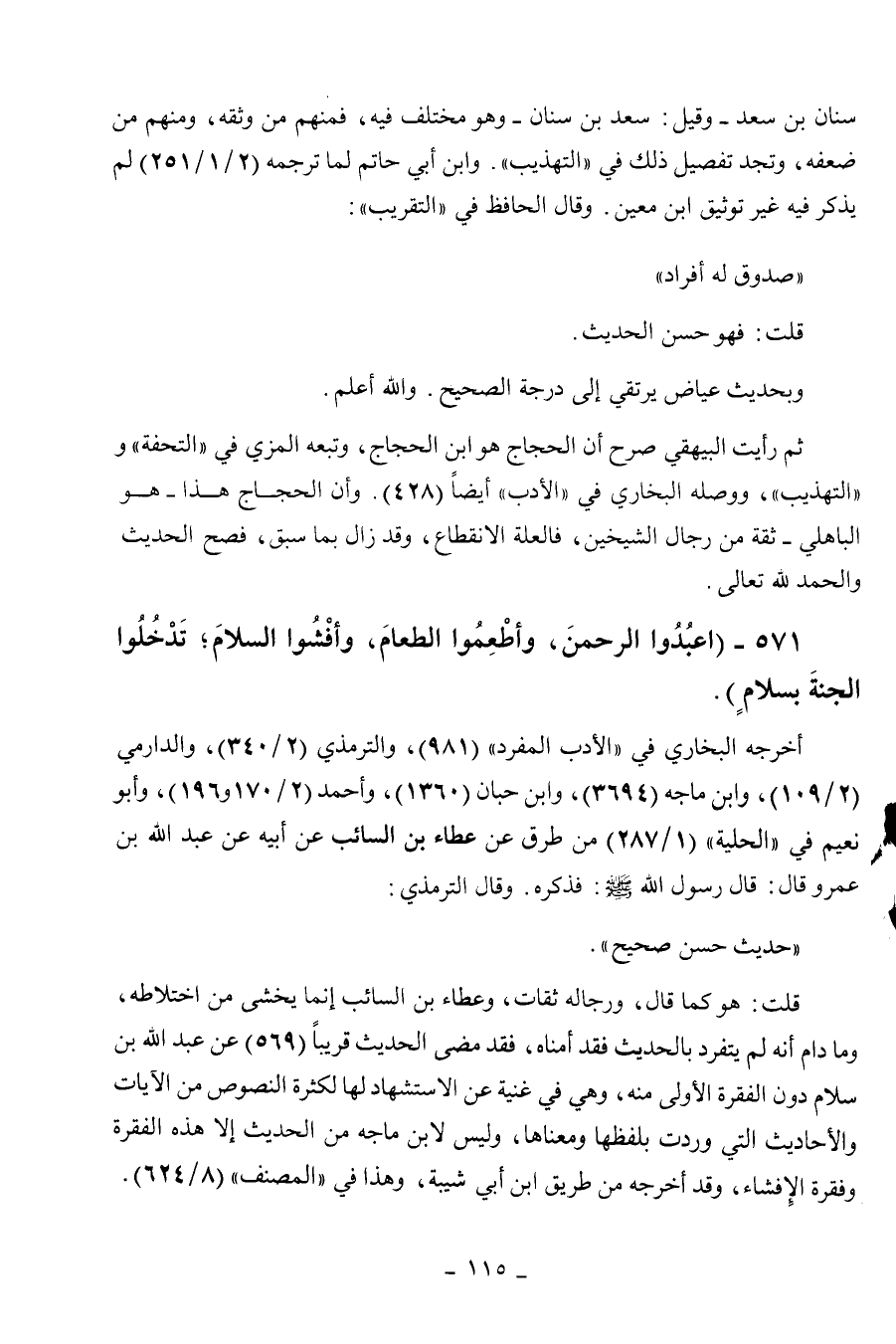 571 - " اعبدوا الرحمن وأطعموا الطعام وأفشوا السلام تدخلوا الجنة بسلام ".