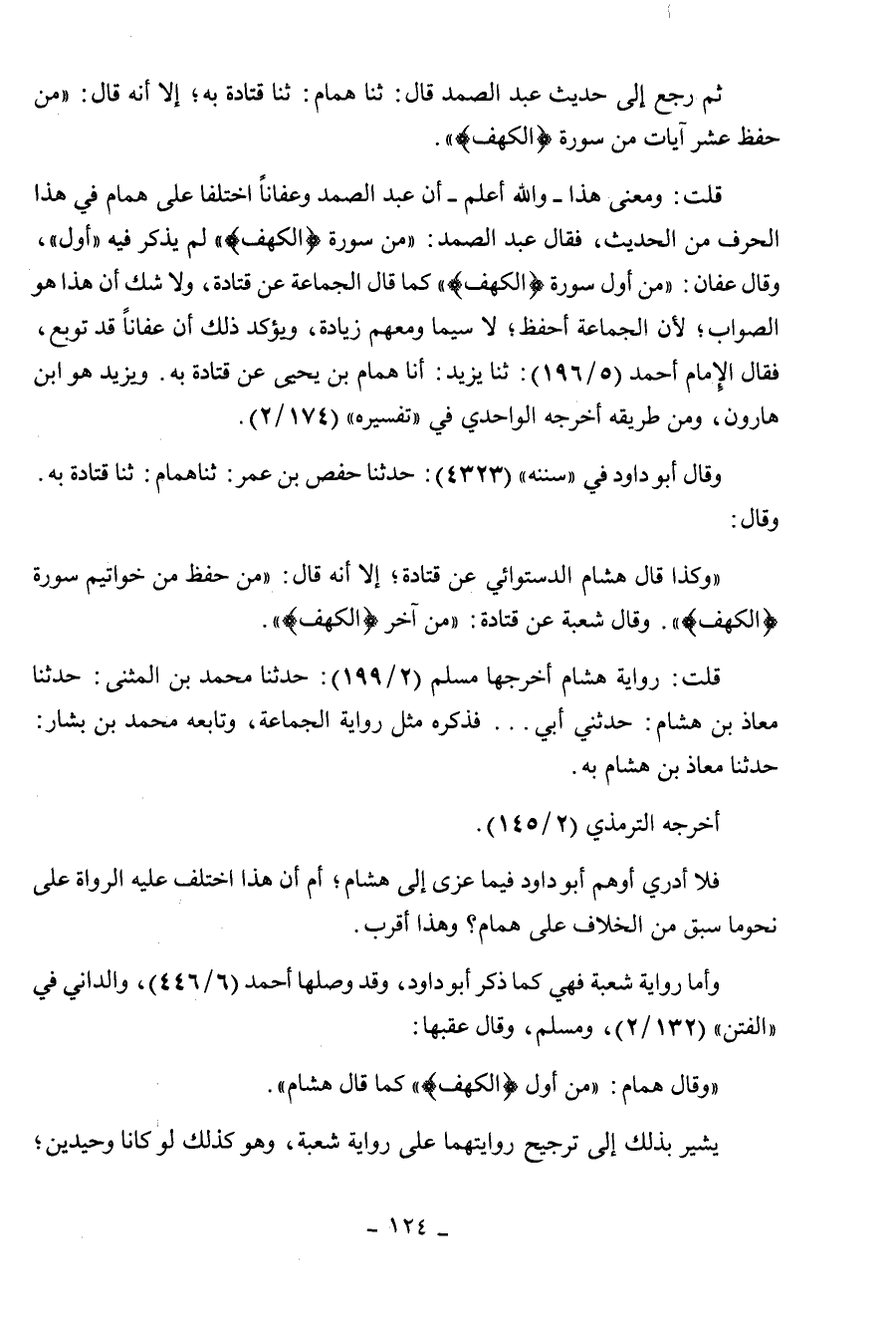الحرف من الحديث، فقال عبد الصمد: " من سورة الكهف " لم يذكر فيه " أول "