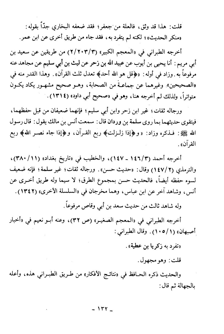 (1 / 105) وقال الطبراني: " تفرد به زكريا بن عطية ".