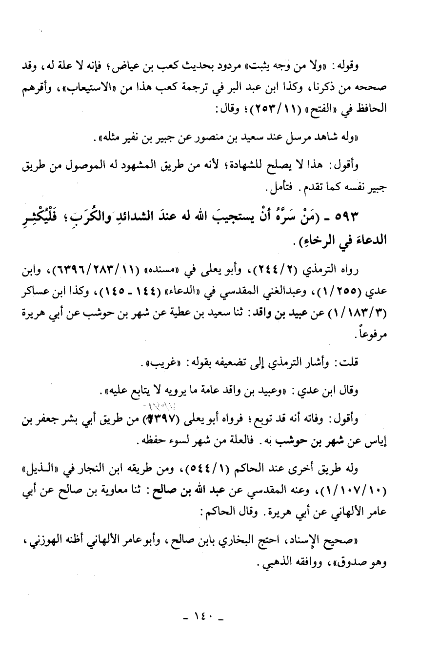593 - " من سره أن يستجيب الله له عند الشدائد والكرب فليكثر الدعاء في الرخاء ".
