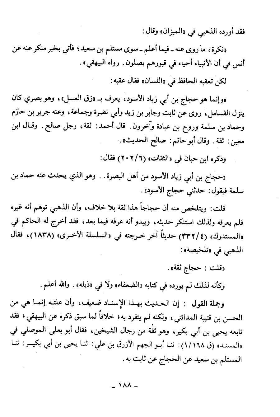 " قلت: حجاج ثقة ". وكأنه لذلك لم يورده في كتابه " الضعفاء " ولا في