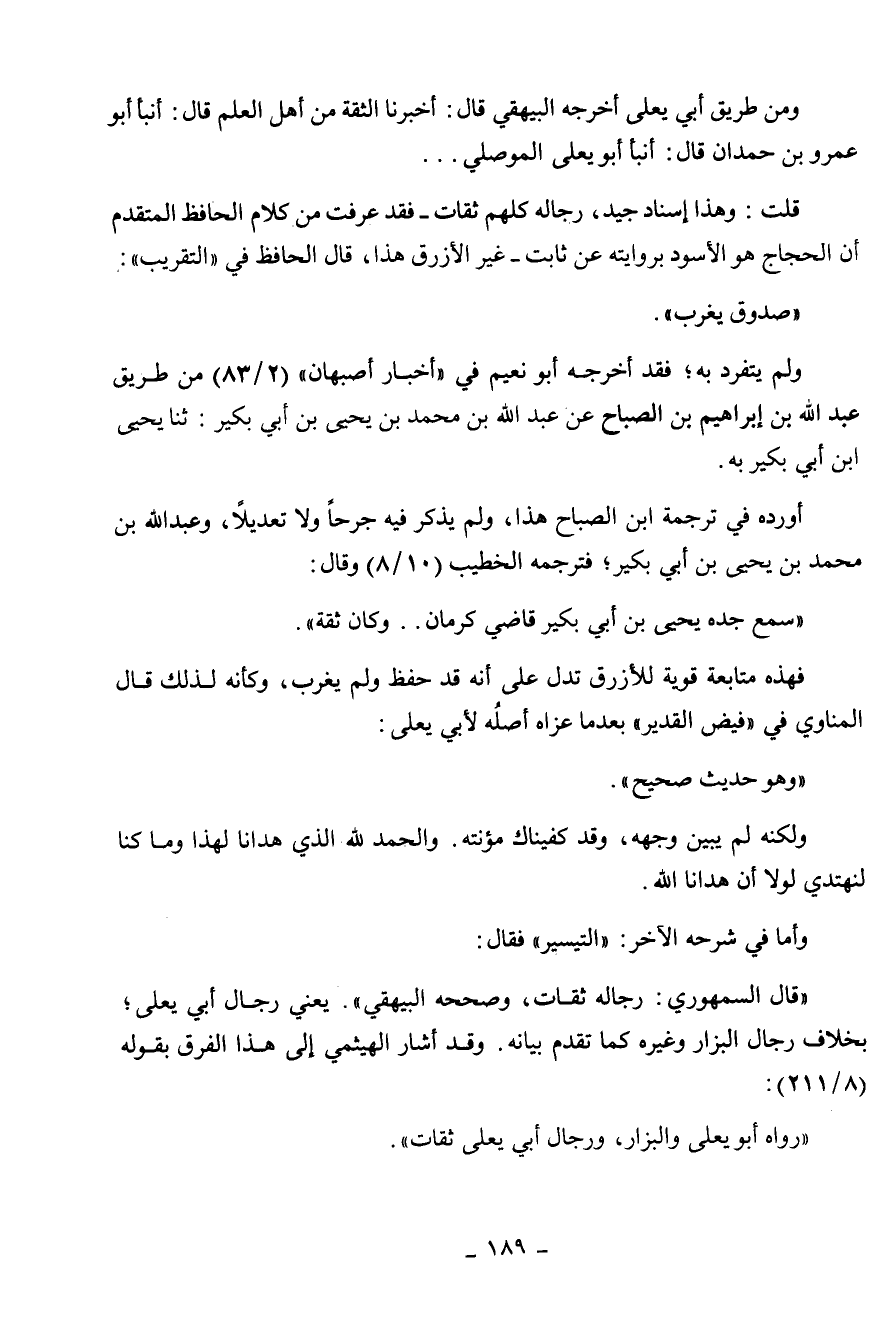 قلت: وهذا إسناد جيد، رجاله كلهم ثقات، غير الأزرق هذا قال الحافظ في