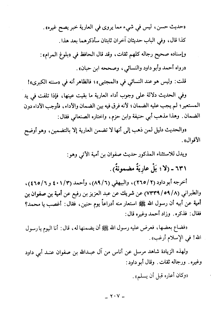 " والحديث دليل لمن ذهب إلى أنها لا تضمن العارية، إلا بالتضمين وهو أوضح