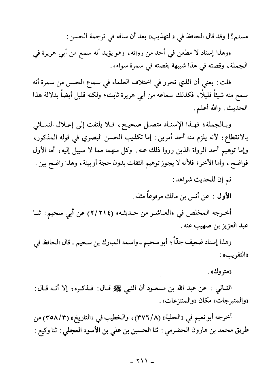 مسلم، وقد قال الحافظ في " التهذيب " بعد أن ساقه في ترجمة الحسن:
