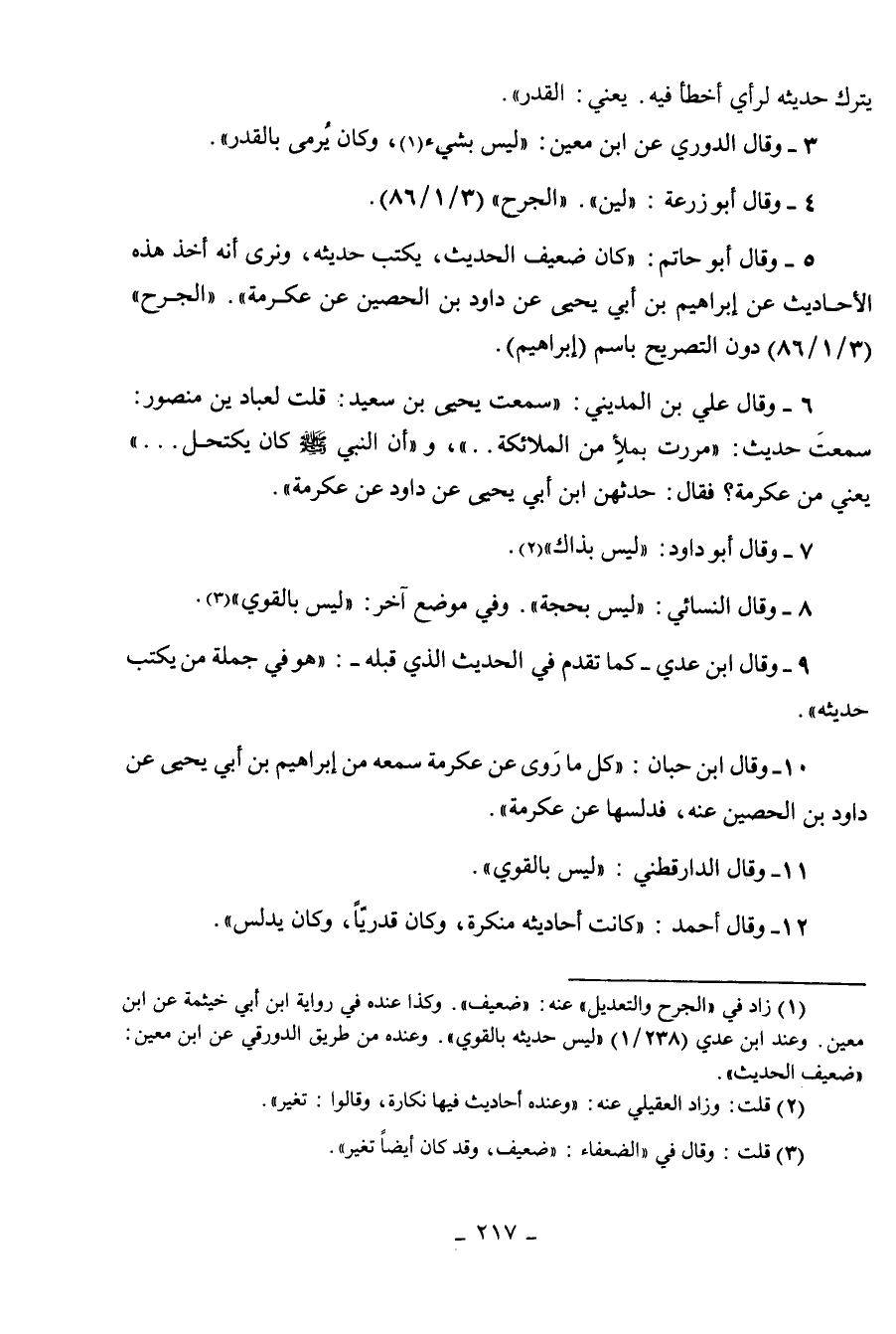 عن إبراهيم بن أبي يحيى عن داود بن الحصين عن عكرمة. (الجرح 3 / 1 / 86) دون