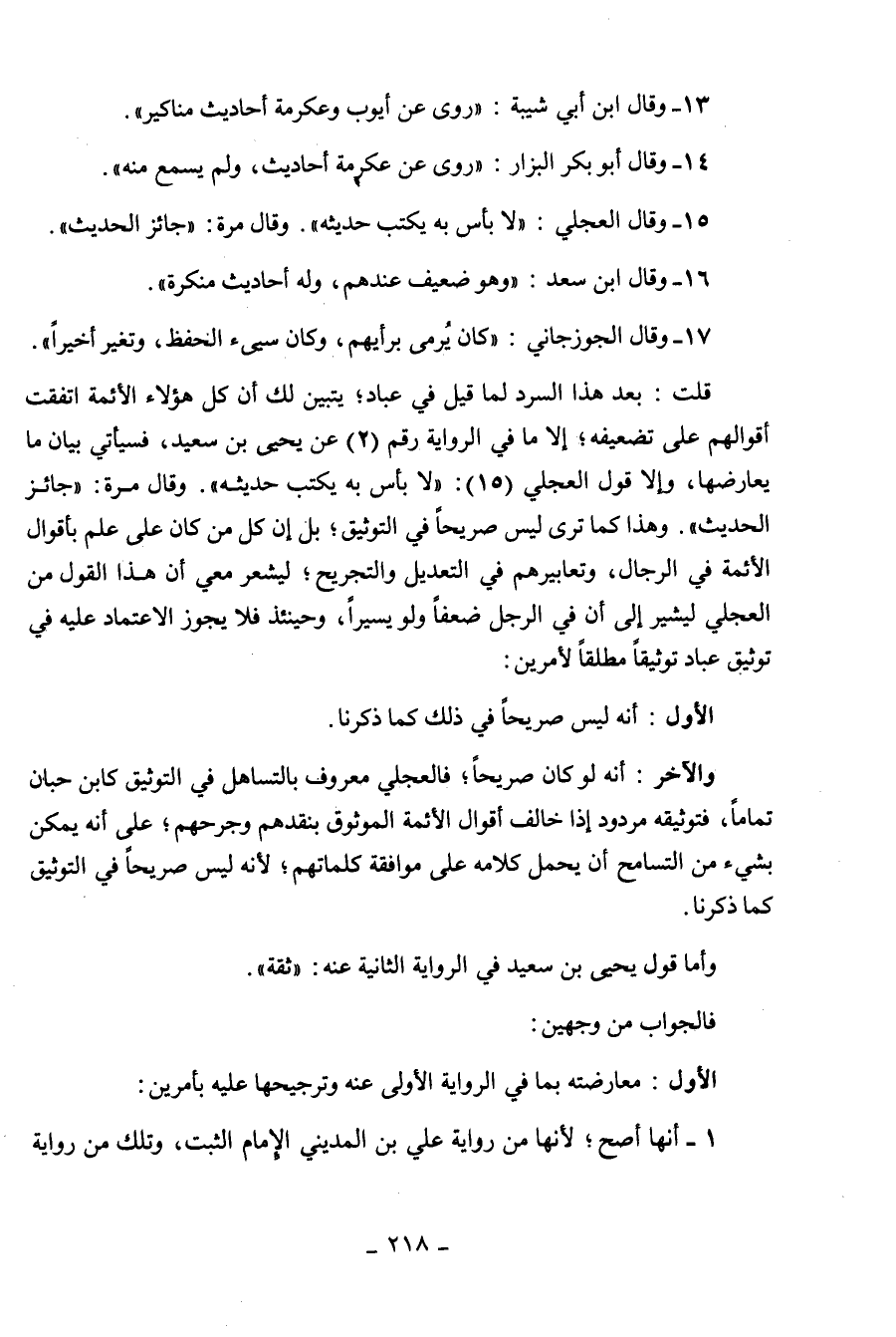 بيان ما يعارضها، وإلا قول العجلي (15) : " لا بأس به يكتب حديثه. وقال