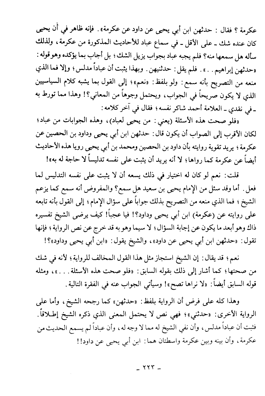 أبي يحيى وداود "؟ ! نعم، قد يقال إن الشيخ استجاز مثل هذا القول المخالف