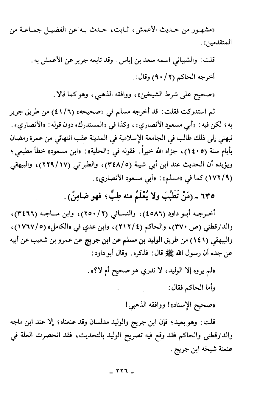 635 - " من تطبب ولا يعلم منه طب، فهو ضامن ".