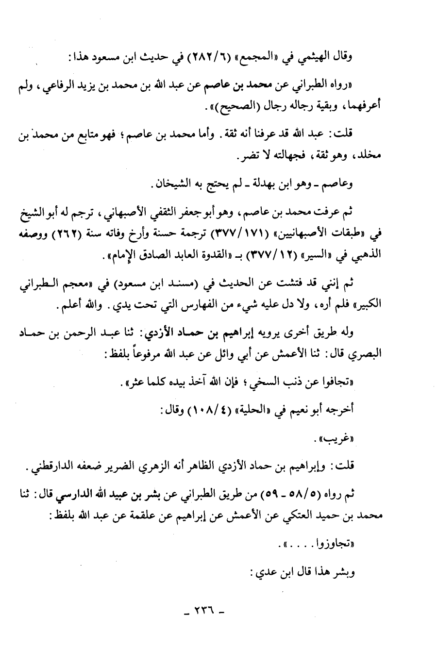 حدثنا محمد بن حميد العتكي، عن الأعمش، عن إبراهيم عن علقمة. عن عبد الله