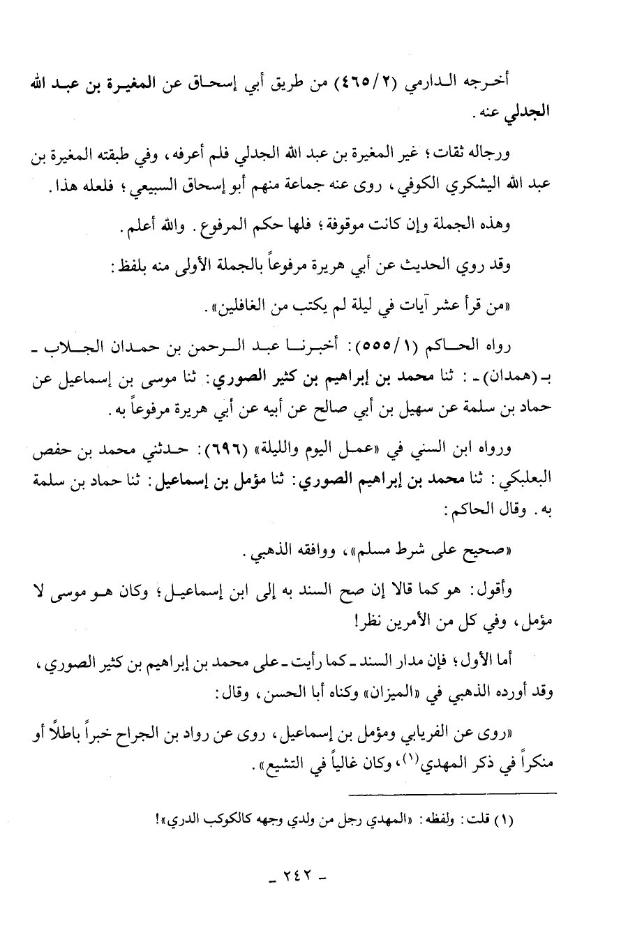 ومؤمل بن إسماعيل، روى عن رواد بن الجراح خبرا باطلا أو منكرا في ذكر المهدي
