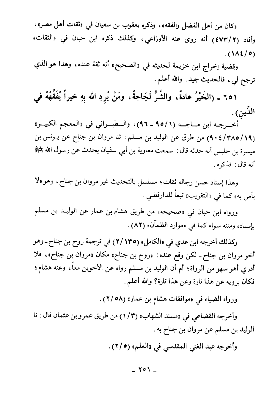 651 - " الخير عادة والشر لجاجة ومن يرد الله به خيرا يفقهه في الدين ".