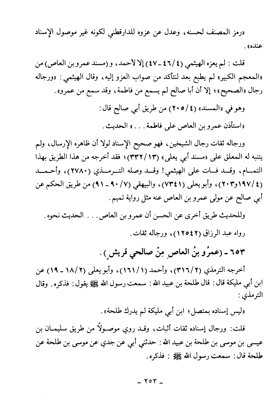653 - " عمرو بن العاص من صالحي قريش ".