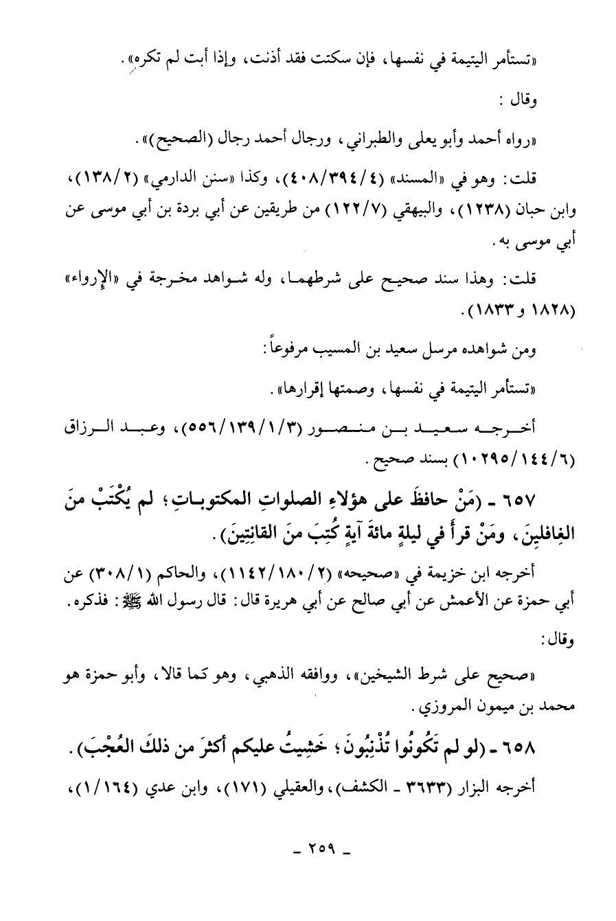 658 - " لو لم تكونوا تذنبون خشيت عليكم أكثر من ذلك: العجب ".